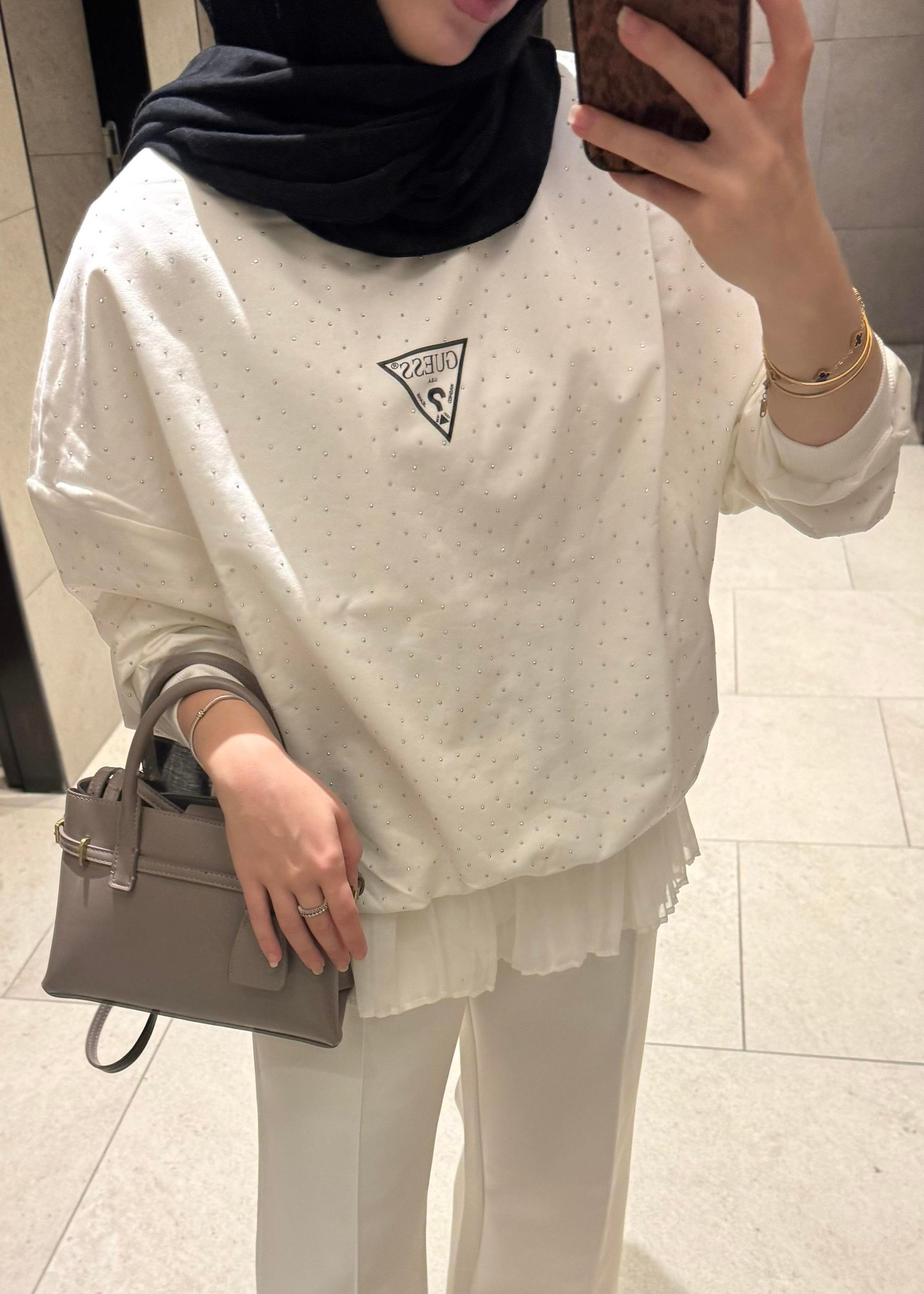 G Taşlı Sweat Beyaz